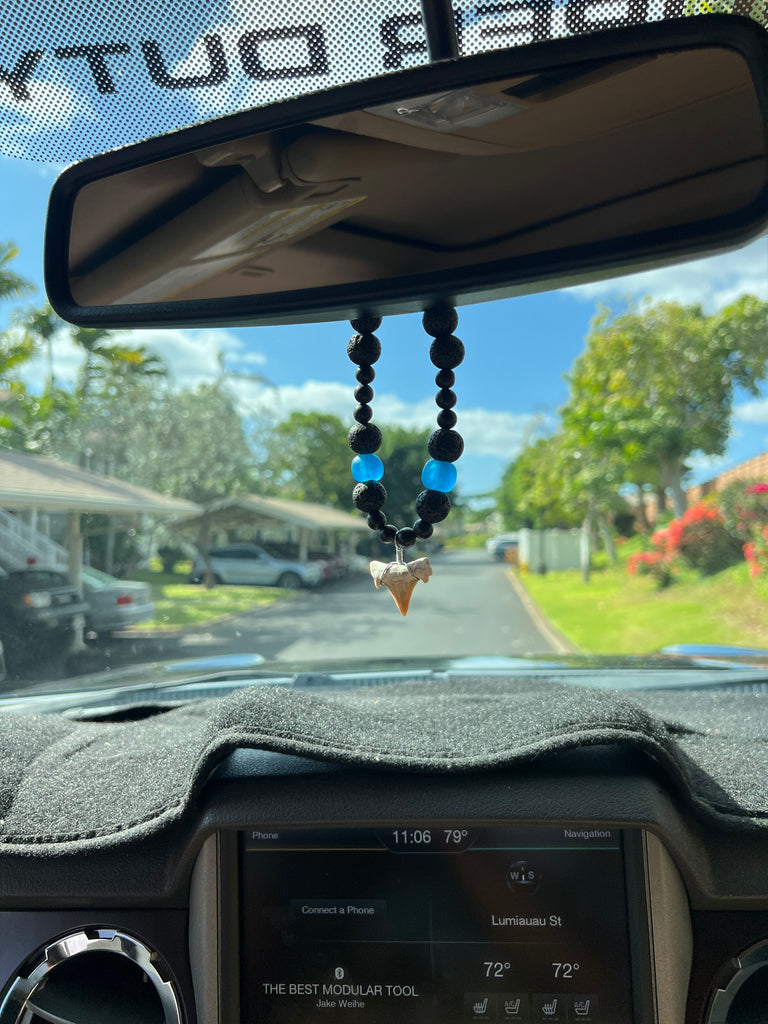 Our round forever Car Lei with a real shark tooth.